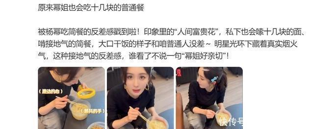 消息一经传出,迅速在网络上引发了热议。众多网友纷纷参与到这个话题的讨论中来,大家似乎从这件看似平常的小事中,对明星有了全新的认识。网友们在各个社交平台上分享着自己的看法,他们感慨道:“原来杨幂也会吃十几块的普通餐”。这简单的话语背后,蕴含着一种恍然大悟的感觉。